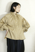 ボリュームスリーブに、カフスと襟元はキルティング切り替えのデザインシャツです。