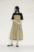 肩のブラック部分はカットソー生地なり着やすく、切り替えのティアード部分がふんわりと広がるシルエットになり女性らしい1着です。
