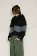ふわふわとした毛足の長めなシャギーニットに、袖と身頃に配色のラインがアクセントになった1枚。