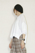 前後差のある後ろ下がりのシルエットでパンツやスカートなどどんなボトムにも合わすやすいです。