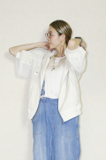 やや透け感のある綿麻素材の身頃に、袖部分はメッシュがドッキングされて初夏らしいスタイリングができます。