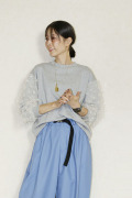 袖にカットジャガードがレイヤードしたデザインtops