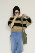 ボリュームのある袖とポコポコした表面感のある太めのボーダーデザインがアクセントに。