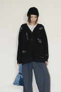 【商品名】trois (トロア)ダンボール糸7Gミラノリブ編み刺繍カーディガン T256-88045-E