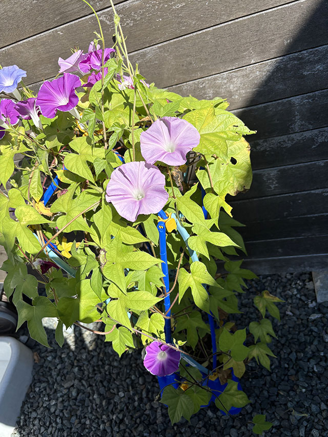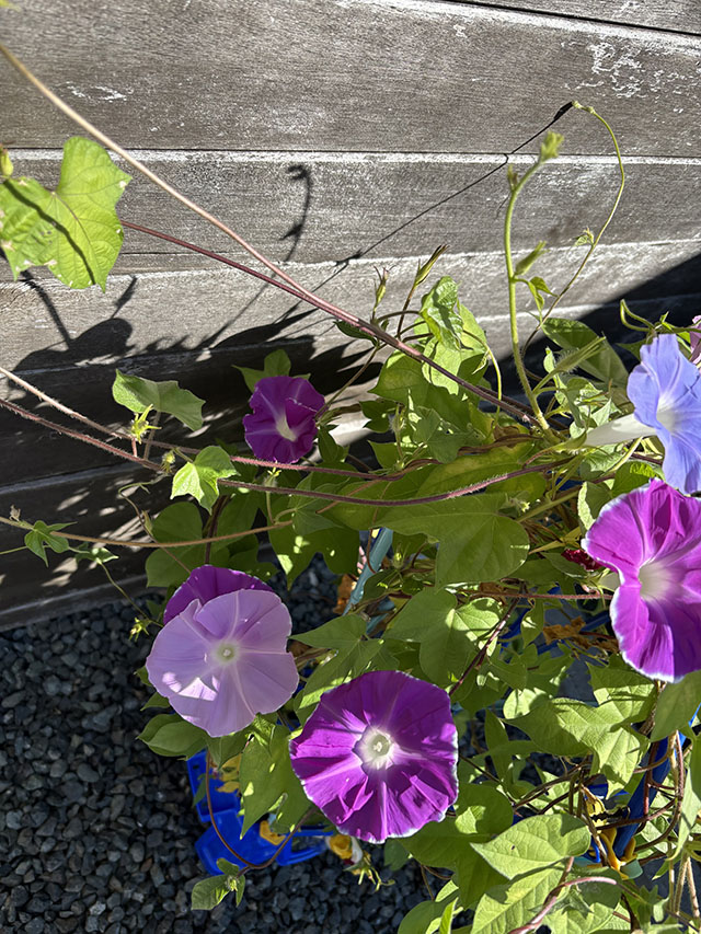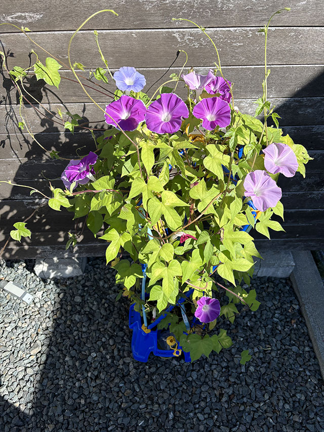 水やりと、アサガオいくつ咲いたかのチェックが、息子の日課。