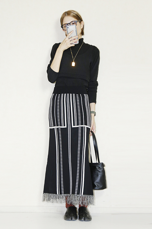 【サイズ】F(ウェスト66cm(ゴム)/ヒップ86cm(ストレッチあり)/スカート丈89cm)