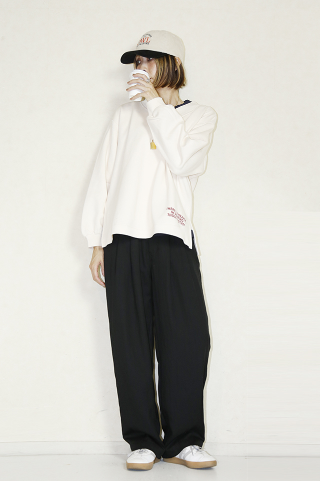 裾のロゴもアクセントに。アイボリーカラーなので重ためな冬コーデに抜け感が出ます。