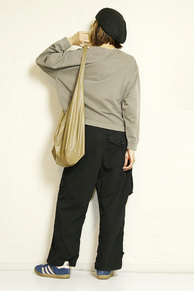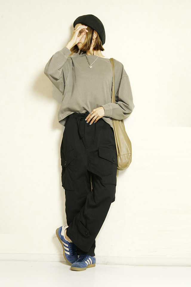 やや短めな着丈に、身頃や袖幅をゆったりとオーバーサイズにしたデザインで抜け感のあるスタイルが作れます。