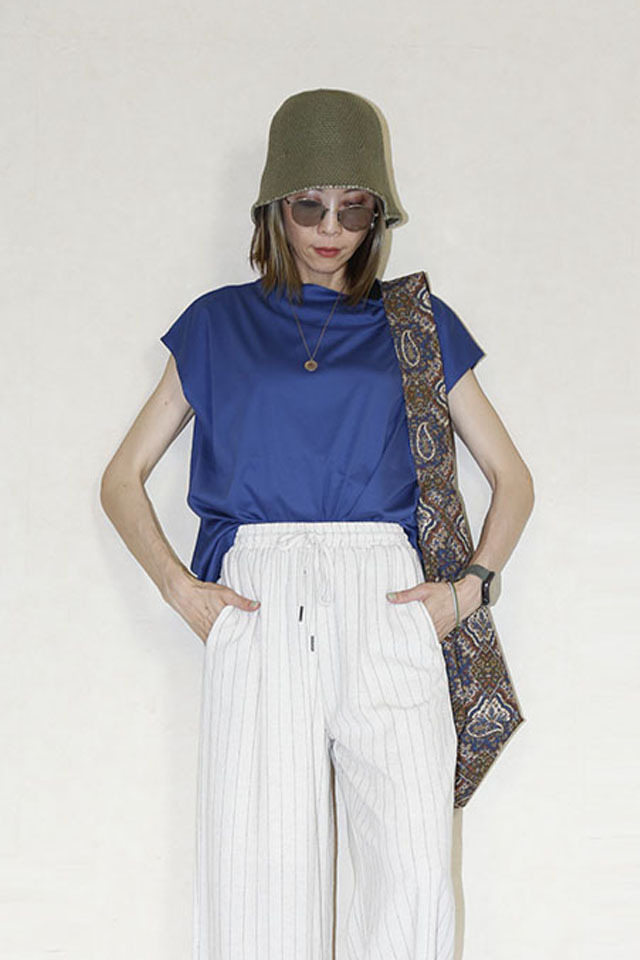 ボトルネックでスッキリとし大人なシンプルカットソー