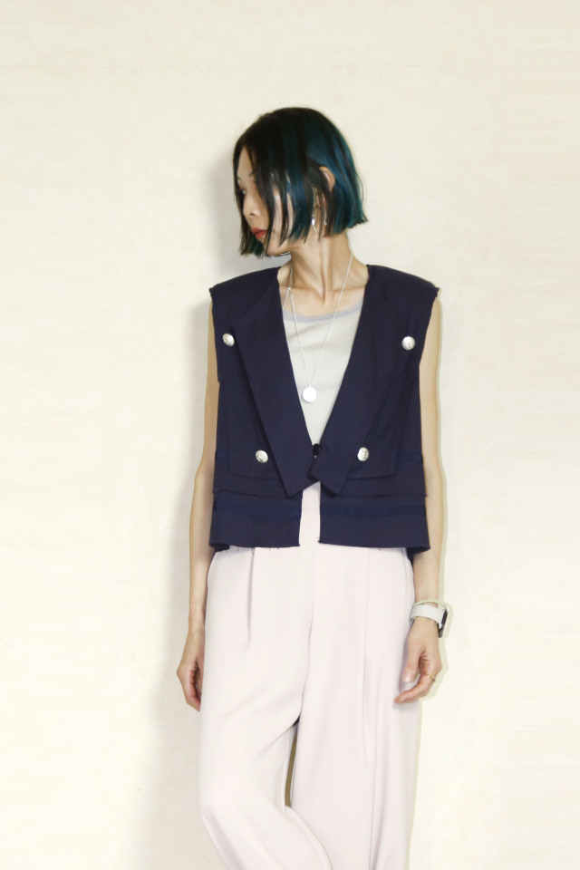 レーヨン素材の柔らかな質感に、肩にはパットが入っているのでナチュラルすぎないデザインになります。