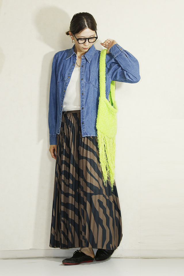 インパクトあるライムカラーに、長めなフリンジがアクセントに!
