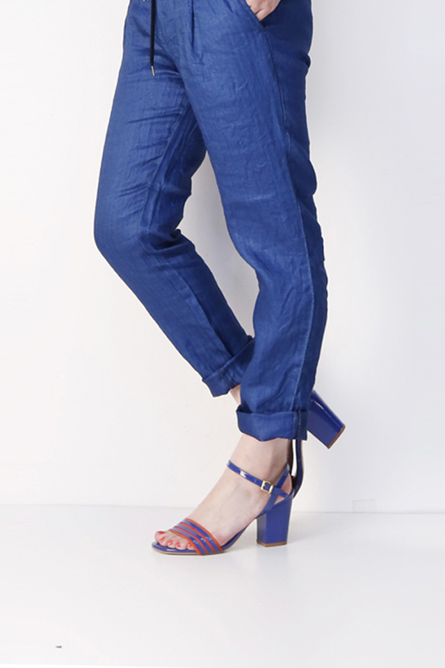 鮮やかなブルーとレッドのカラーリングが夏らしく爽やかに履いて頂けます。