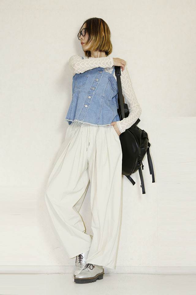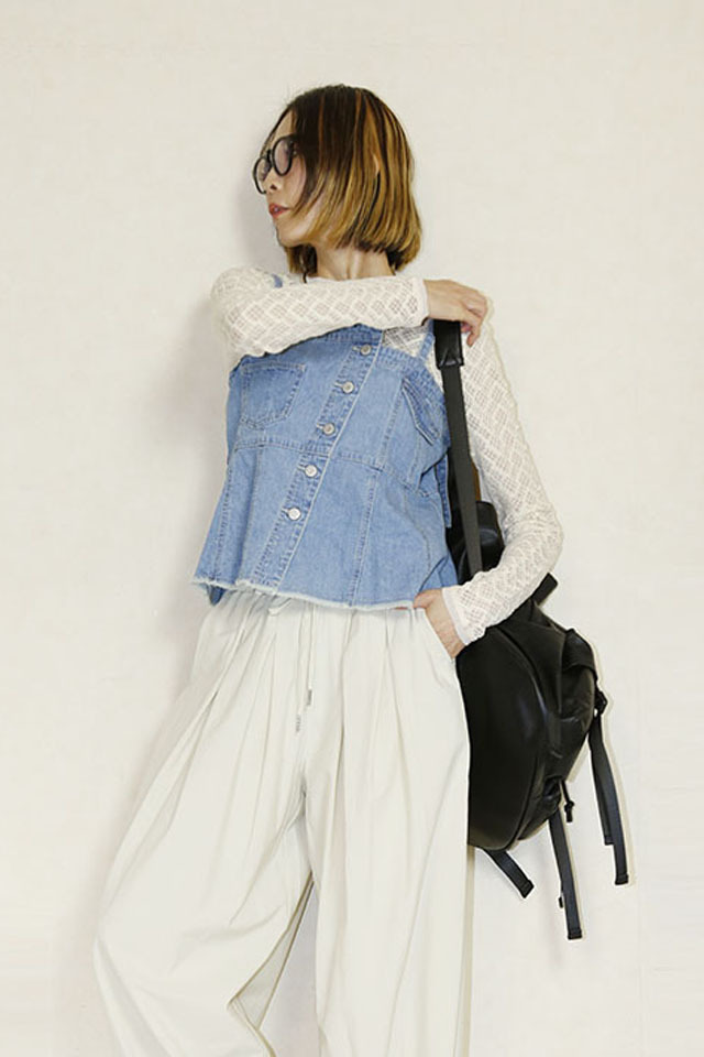 インナー次第でオールシーズン楽しめえるデニムビスチェ。
