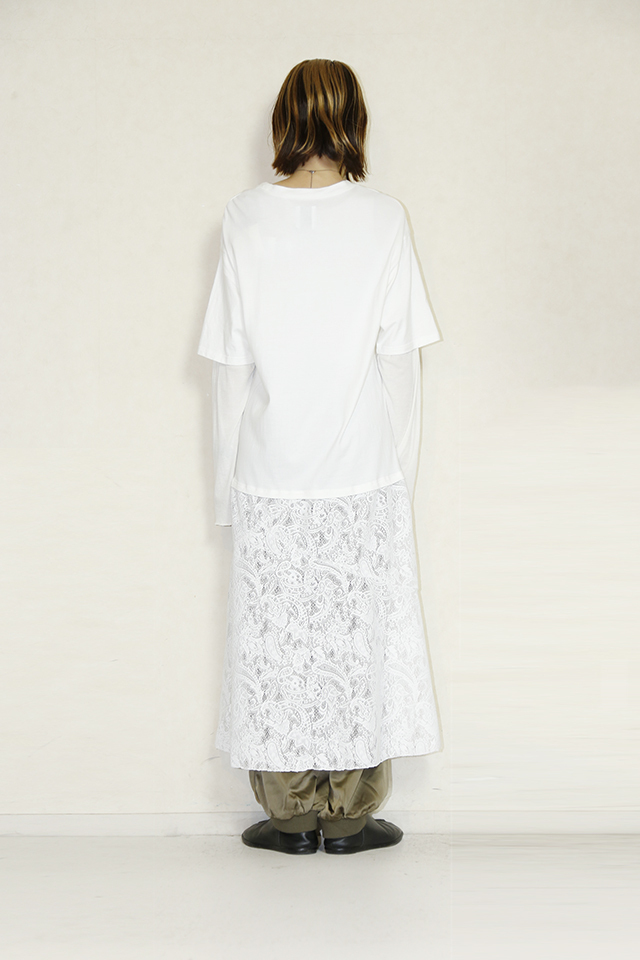 【商品名】OKIRAKU (オキラク) double sleeves lace skirt docking print t shirts BD60502-WHITE