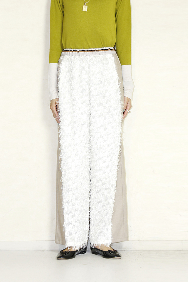 フロントはシャギー、バックは同色の異素材で切り替えになったイージーパンツです。
