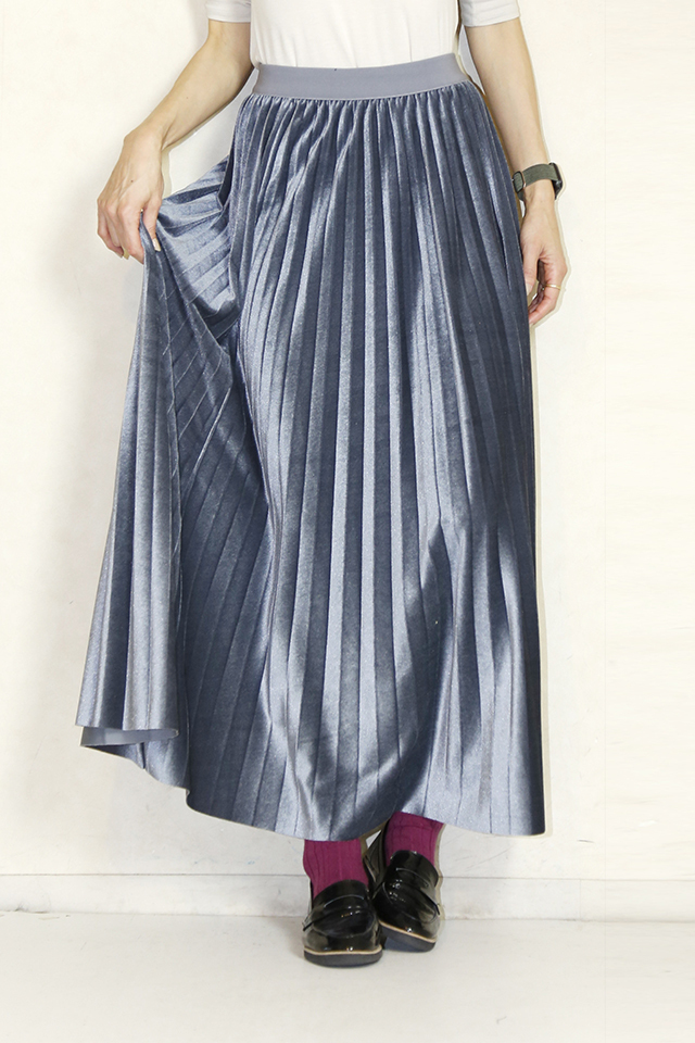 トレンドのベロア素材を使用したプリーツスカート
