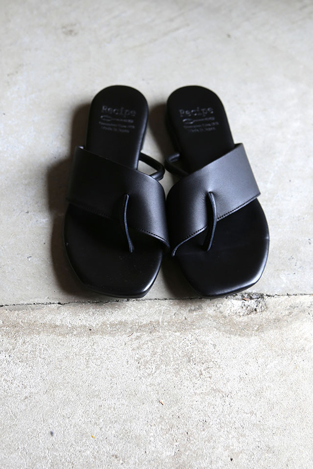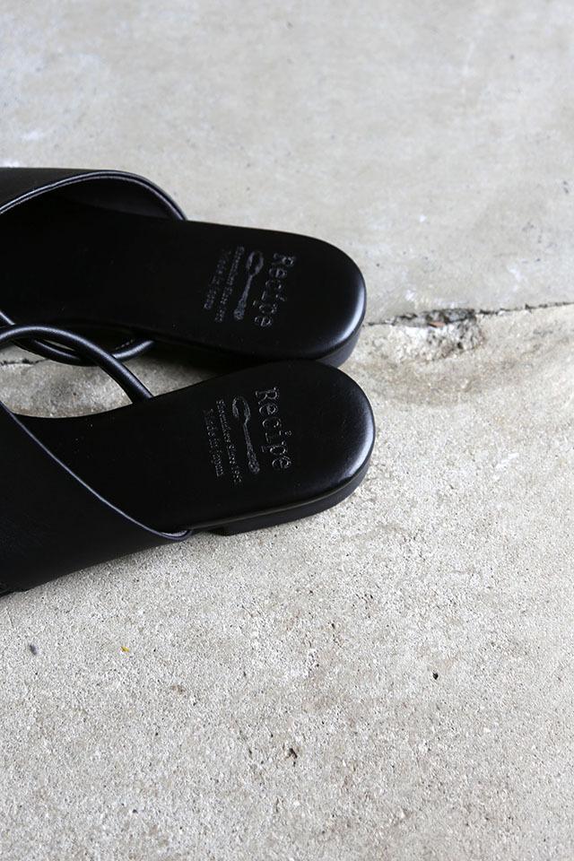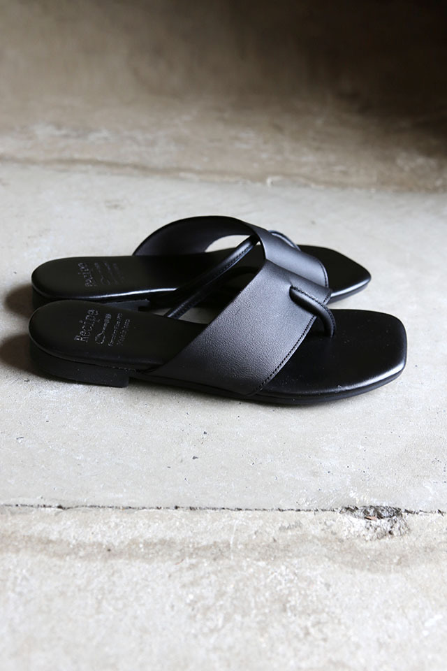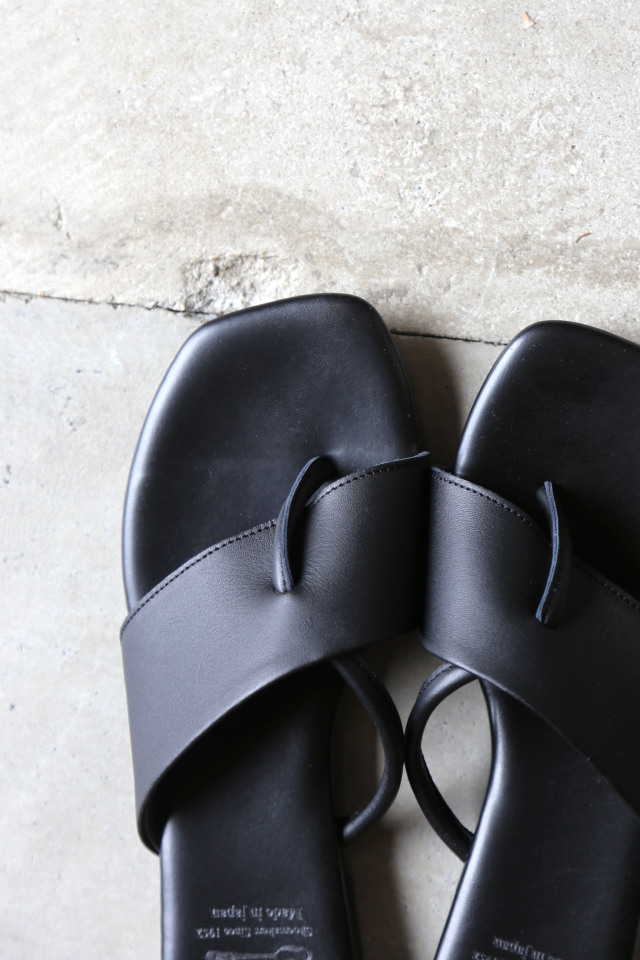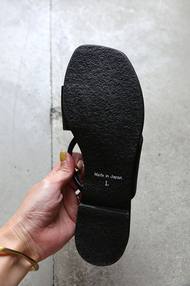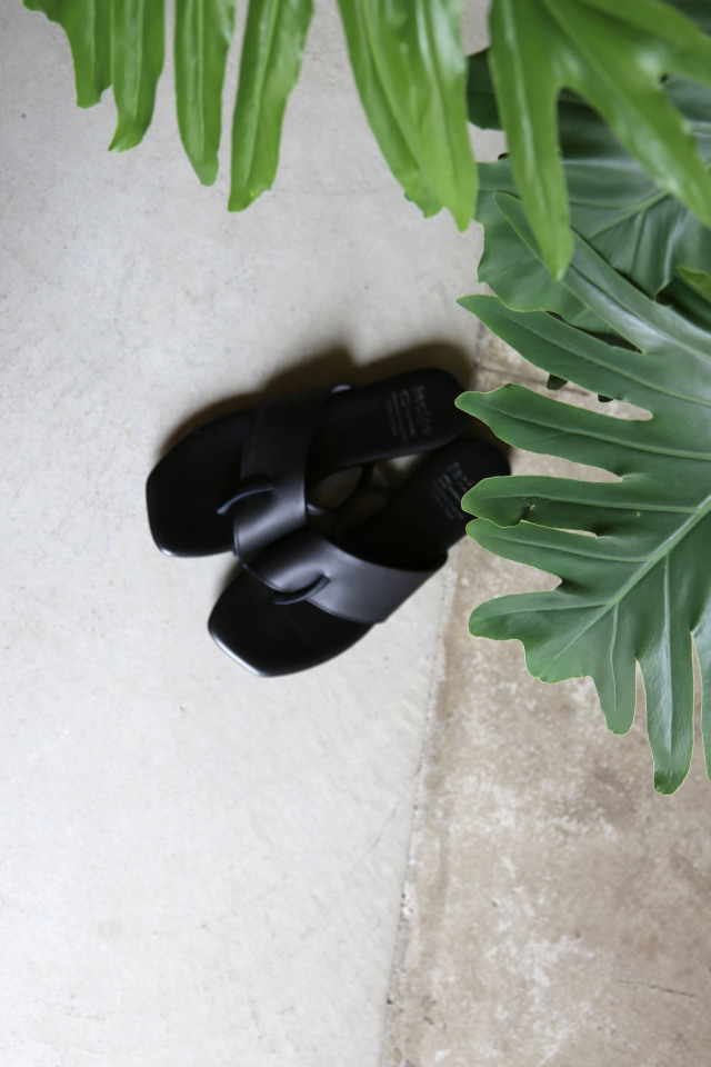 シンプルながらも曲線的なレザーコードとスクエアトウがモダンなサンダル