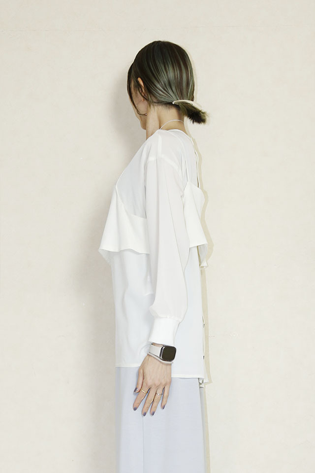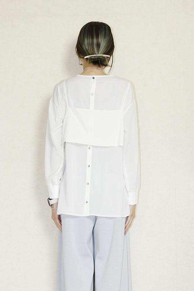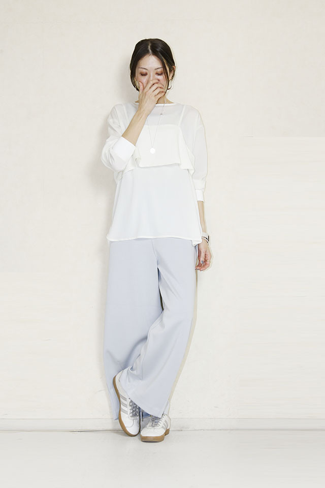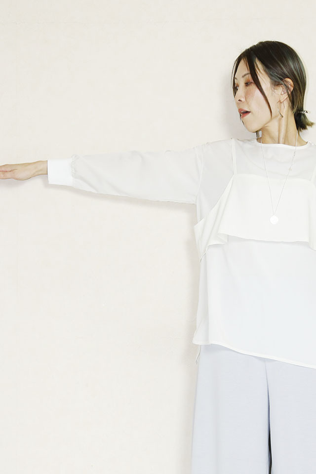 キャミソールとプルオーバーを重ねたようなデザインが特徴のレイヤード風プルオーバー。