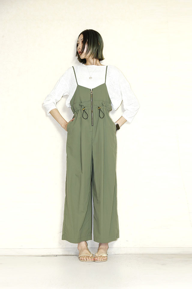 リラックス感がありながらも自然とスタイルアップして見える、大人のためのオールインワンです。